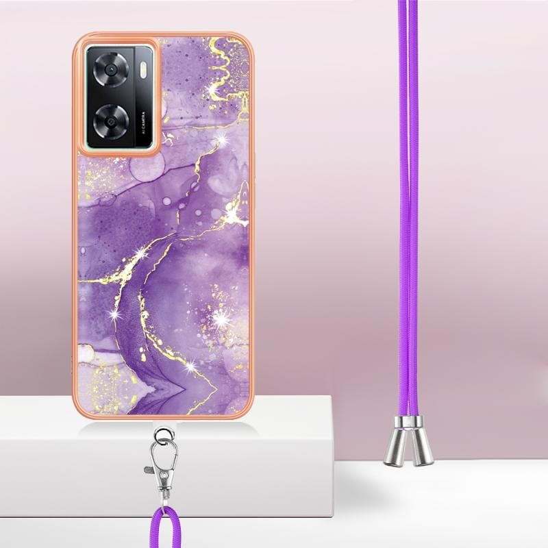 Θήκη τηλεφώνου OnePlus Nord N300 με επιμετάλλωση, σχέδιο μάρμαρου, διπλής όψης IMD με κορδόνι (Μωβ 001)