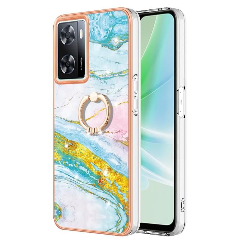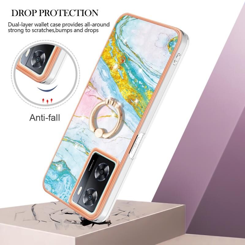 Θήκη τηλεφώνου OnePlus Nord N300 Electroplating Marble IMD TPU με Δακτύλιο Στήριξης (Λευκό 006)