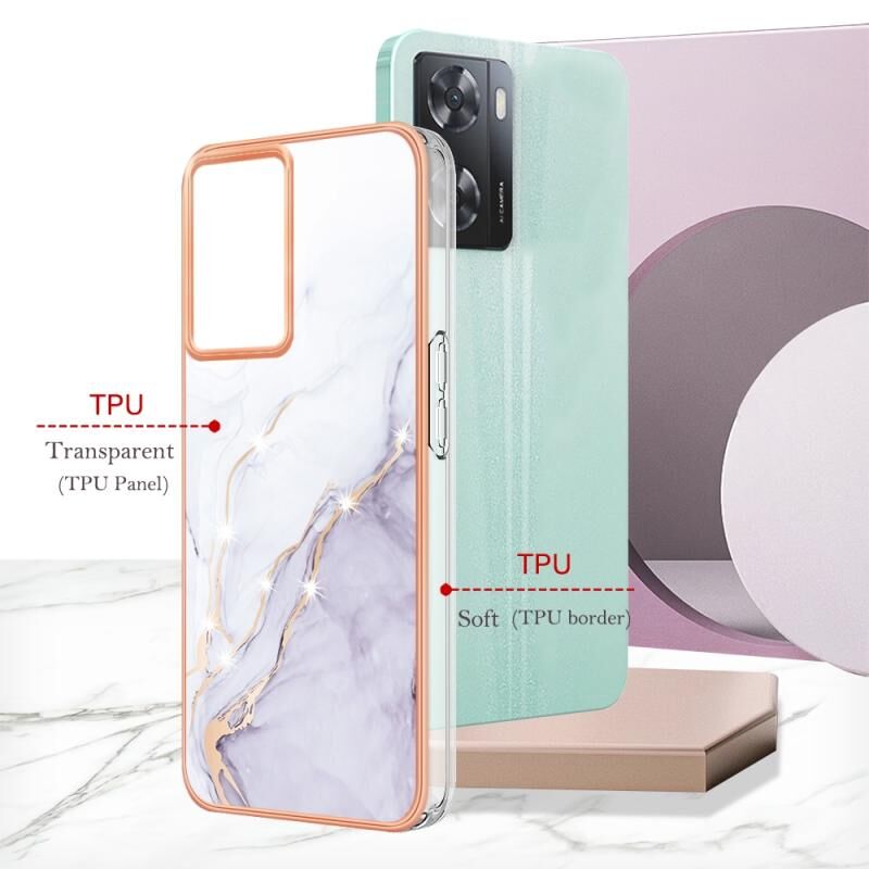 Θήκη τηλεφώνου με ηλεκτρολυτική μαρμάρινη επένδυση IMD διπλής όψης για OnePlus Nord N300 / OPPO A57 4G 2022 / Realme Narzo 50 5G Global / OPPO K10 5G Global (Λευκό 006)