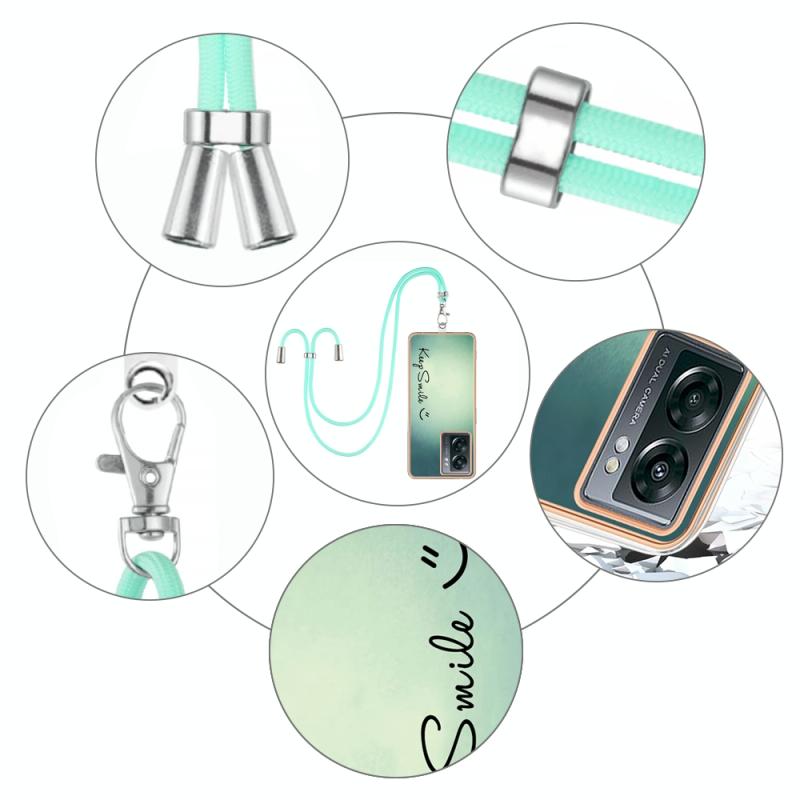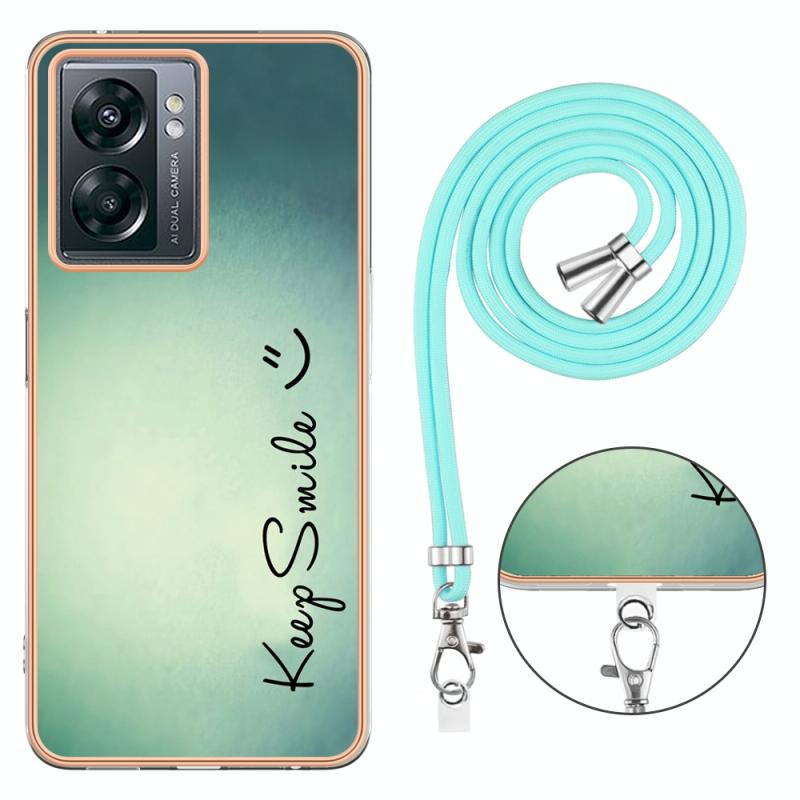 For OnePlus Nord N300 / OPPO A57 Electroplating Dual-side IMD Phone Case with Lanyard(Smile)