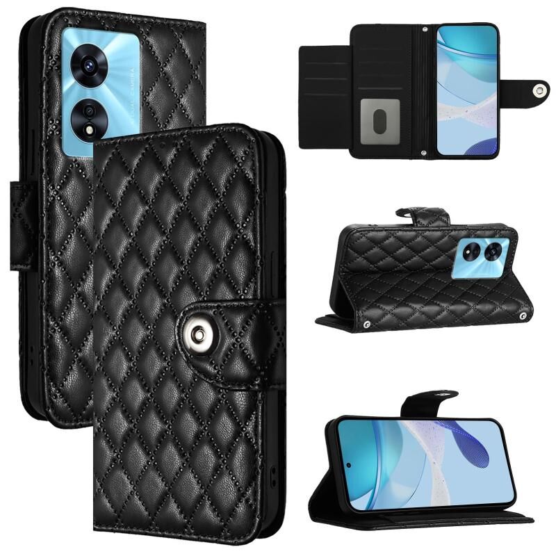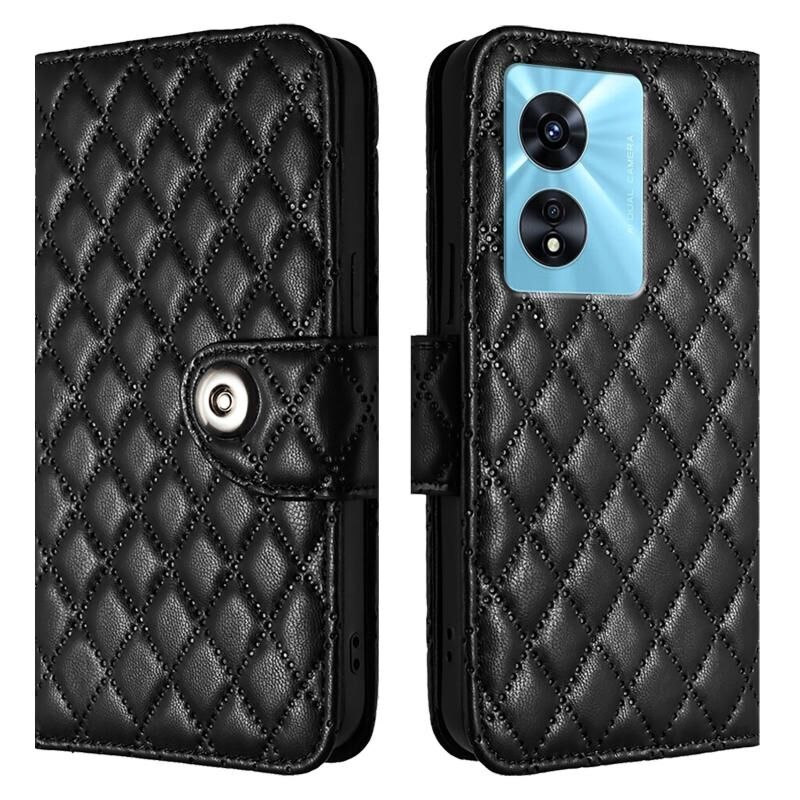 Για το OnePlus Nord N300 Rhombic υφή Flip δερμάτινη θήκη τηλεφώνου με κορδόνι (Μαύρο)