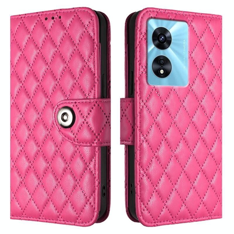 Για OnePlus Nord N300 Rhombic υφή Flip υπόθεση τηλεφώνου δέρμα με κορδόνι (Rose Red)