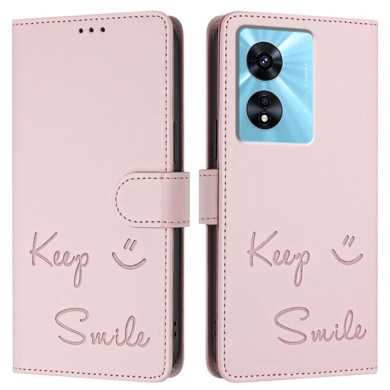 Για OnePlus Nord N300 Χαμόγελο ανάγλυφο RFID δερμάτινη θήκη τηλεφώνου (ροζ)