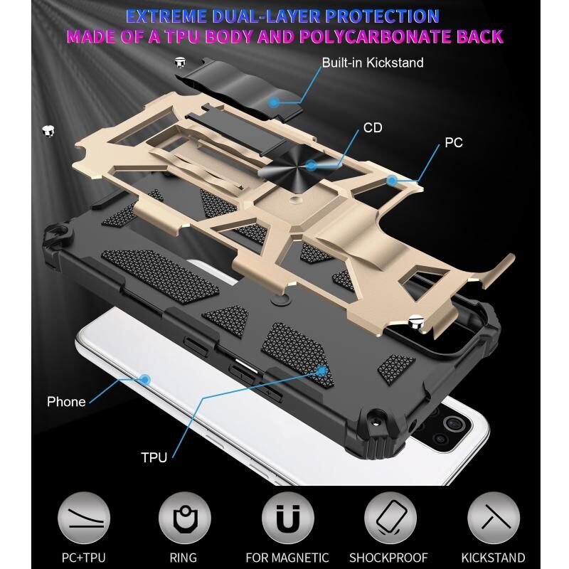 Για OnePlus Nord / Nord N200 5G Shockproof TPU + PC μαγνητική προστατευτική θήκη με κάτοχο (χρυσό)