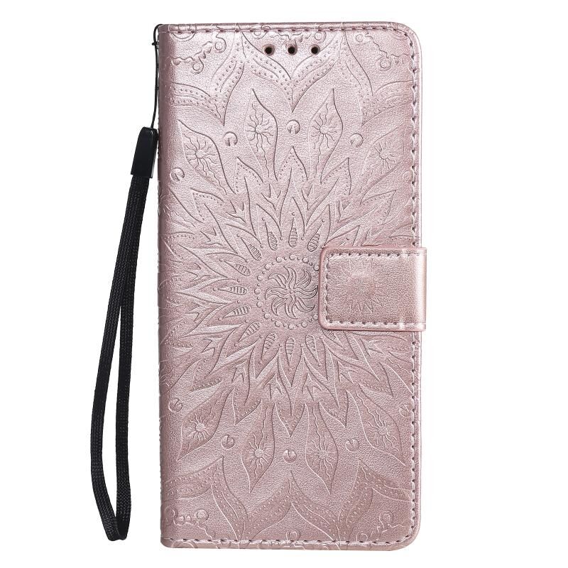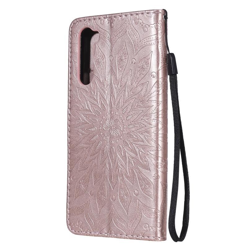 For OnePlus Nord Pressed Printing Sunflower Pattern Horizontal Flip PU Leather Case with Holder & Card Slots & Wallet & Lanyard(Rose Gold)
