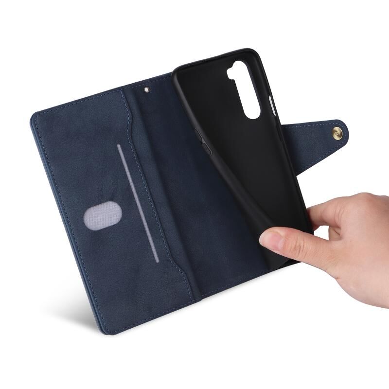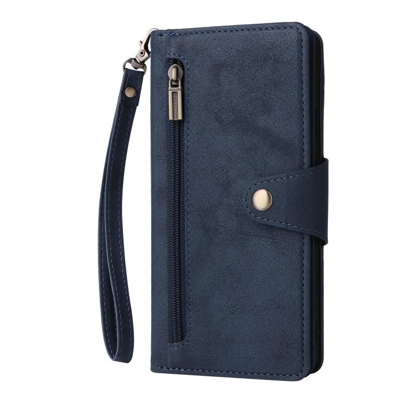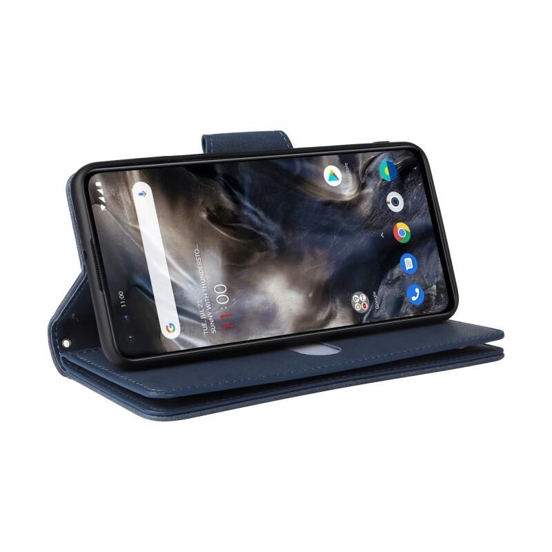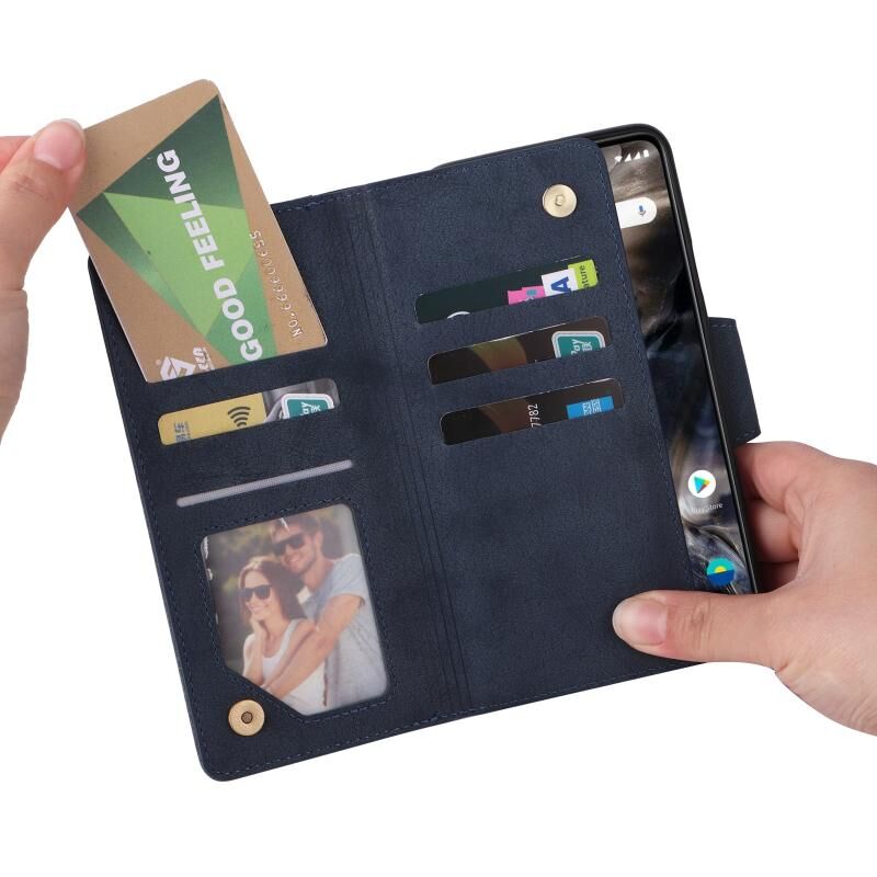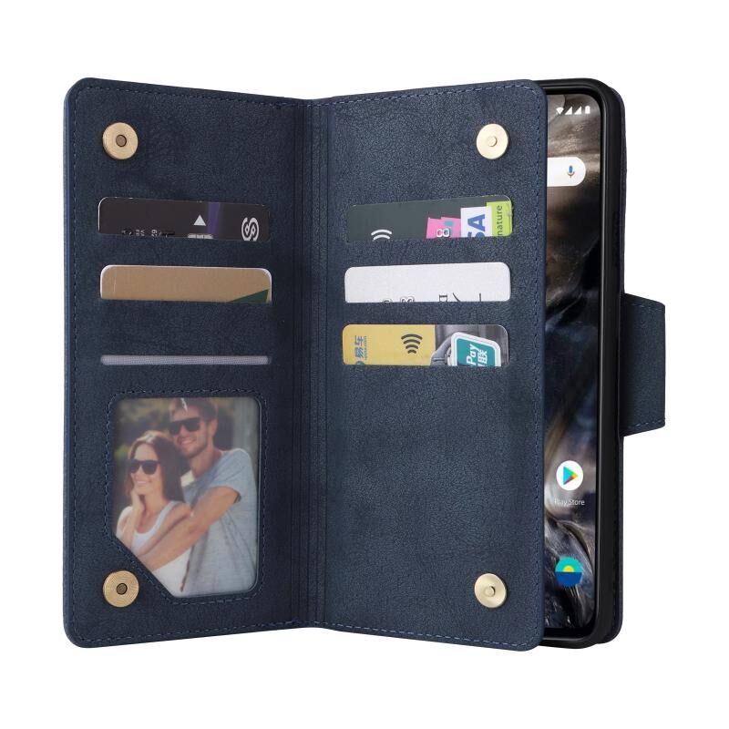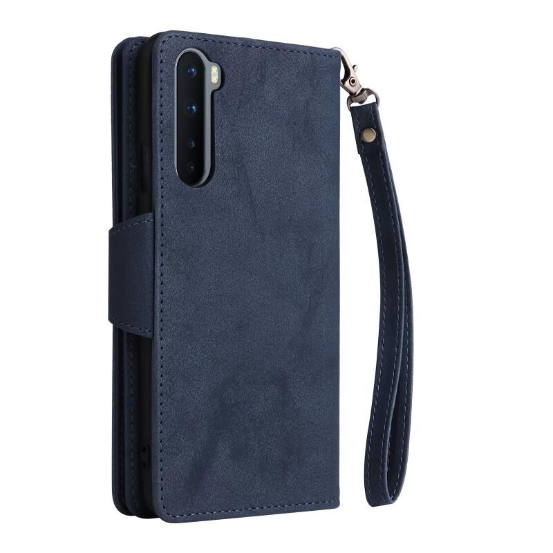 Για OnePlus Nord Rivet πόρπη 9 κάρτες τρεις φορές δερμάτινη θήκη τηλεφώνου (μπλε)