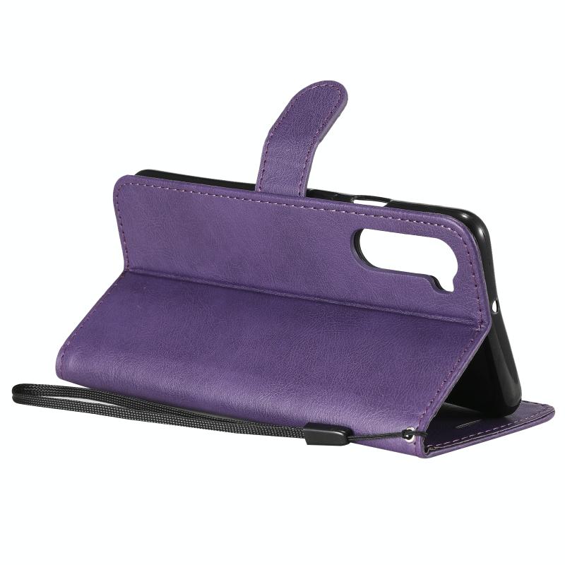 For OnePlus Nord Solid Color Horizontal Flip Protective Leather Case with Holder & Card Slots & Wallet & Photo Frame & Lanyard(Purple)