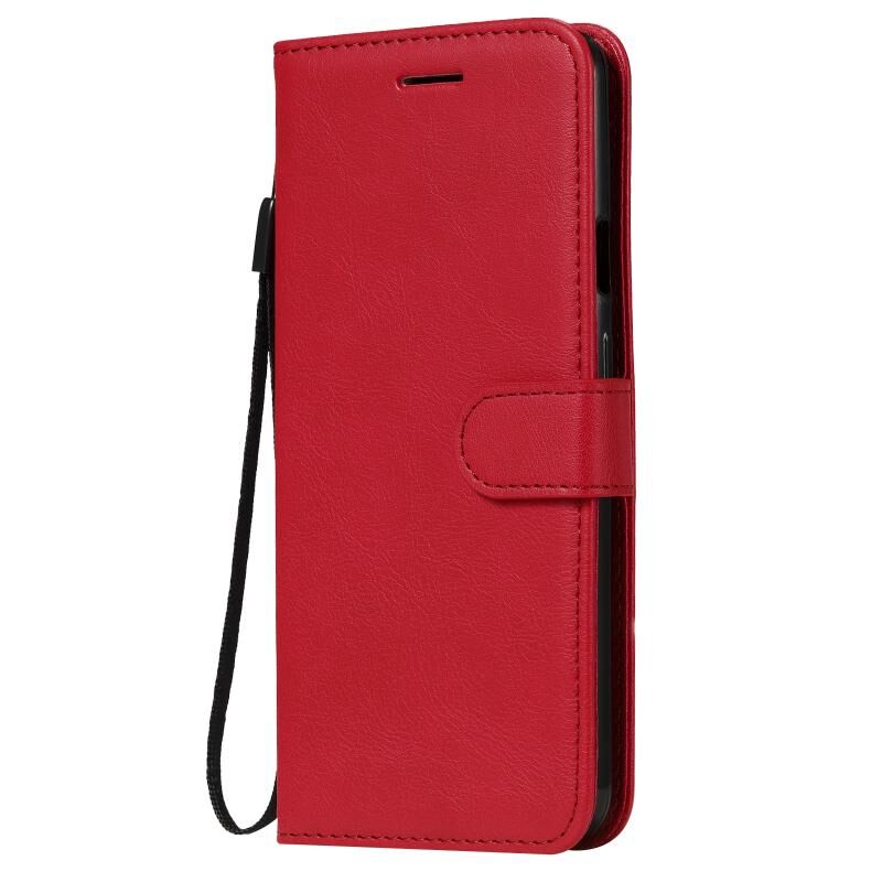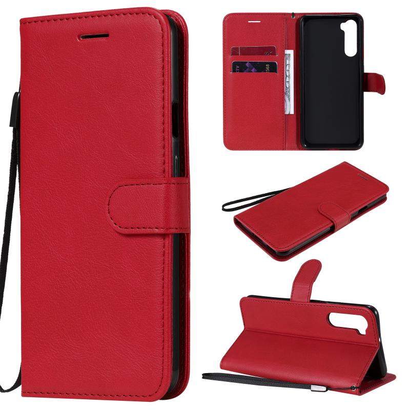 Θήκη για OnePlus Nord, μονόχρωμη, οριζόντια, αναδιπλούμενη, προστατευτική από δέρμα με βάση & θήκες για κάρτες & πορτοφόλι & κορνίζα φωτογραφιών & κορδόνι (Κόκκινο)