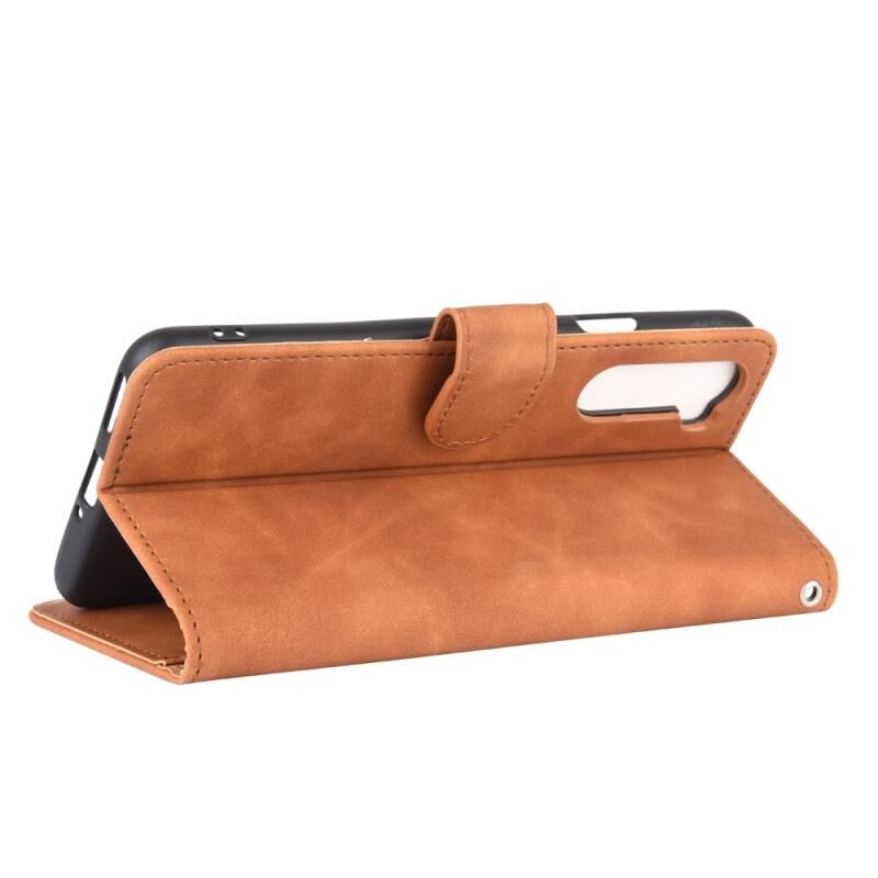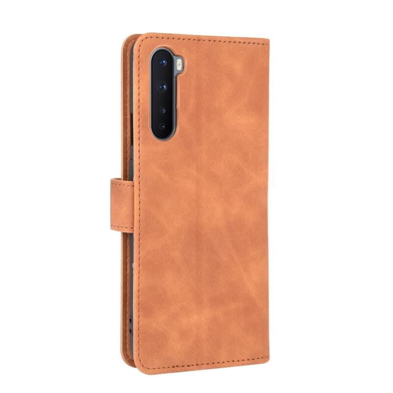 Για το OnePlus Nord Solid Color Skin Feel μαγνητική πόρπη οριζόντια Flip μοσχάρι υφή PU δέρμα υπόθεση με κάτοχο & υποδοχές καρτών & πορτοφόλι (καφέ)