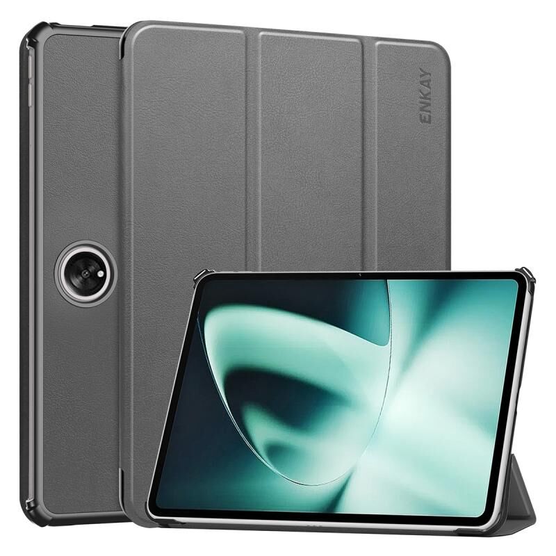 Για OnePlus Pad / OPPO Pad 2 ENKAY Θήκη Smart με Δερμάτινη Υφή Tri-fold Custer (Γκρι) (Γκρι)