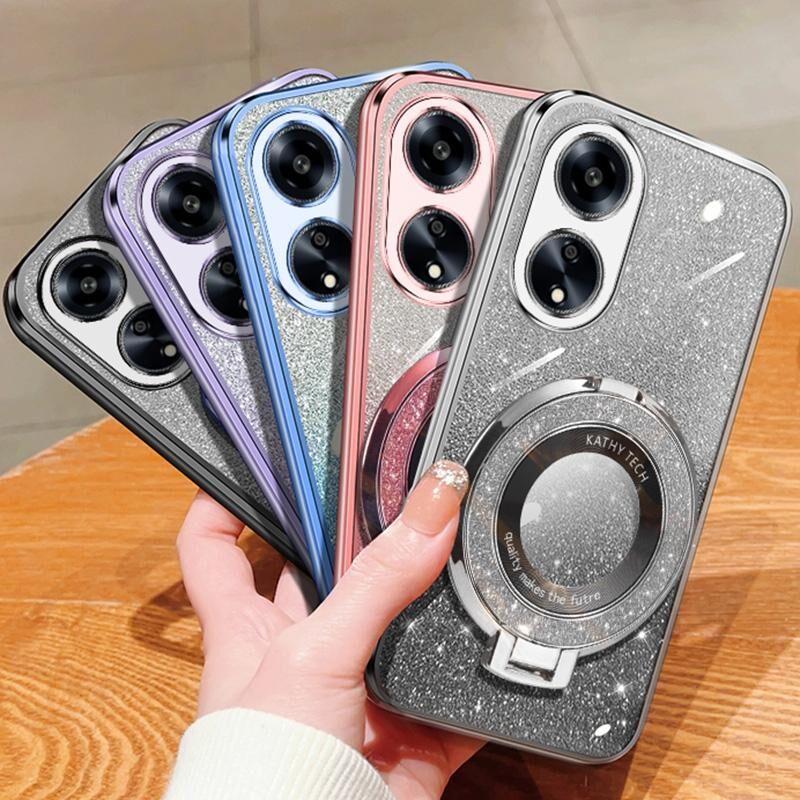 Θήκη τηλεφώνου TPU με στρογγυλό στήριγμα, επιμετάλλωση, διαβαθμισμένη λάμψη για OPPO A1 5G / A98 4G (Ροζ)