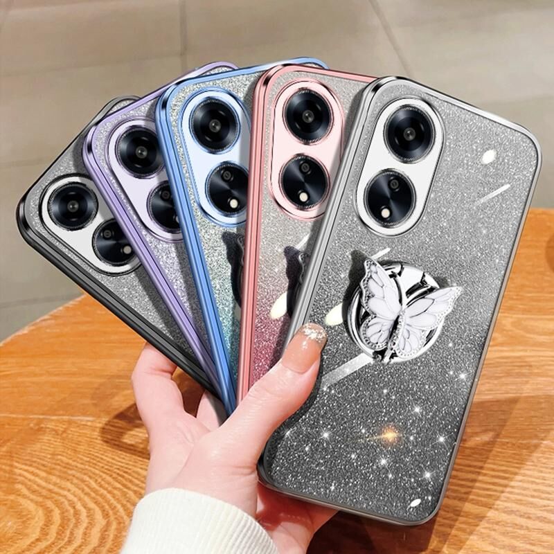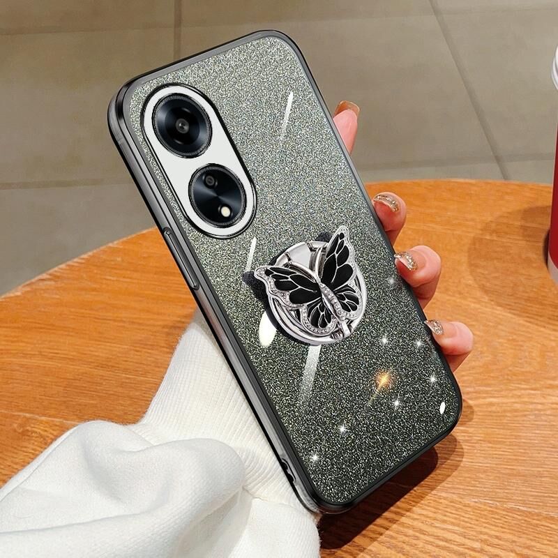 Για OPPO A1 5G επιμεταλλωμένο βαθμιδωτή Glitter πεταλούδα κάτοχος TPU τηλέφωνο υπόθεση (μαύρο)