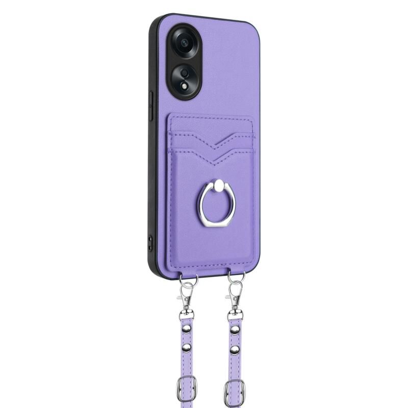 Για OPPO A1 Active / A2x R20 Crossbody σχοινί δαχτυλίδι κάρτα κάτοχος υπόθεση τηλεφώνου (Μωβ)