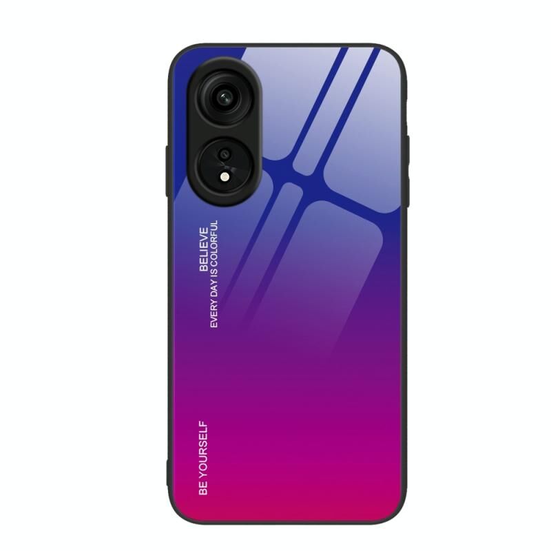 Θήκη τηλεφώνου από γυαλί με διαβαθμιστικό χρώμα για OPPO A1 Pro (Μωβ-κόκκινο)