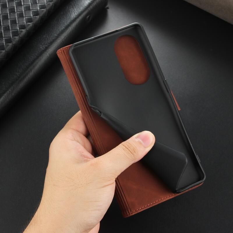 Θήκη τηλεφώνου από δέρμα με αναδιπλούμενο σχέδιο για OPPO A1 Pro/Reno8 T 5G, υφή μοσχαρίσιου δέρματος (καφέ) (AZNS)