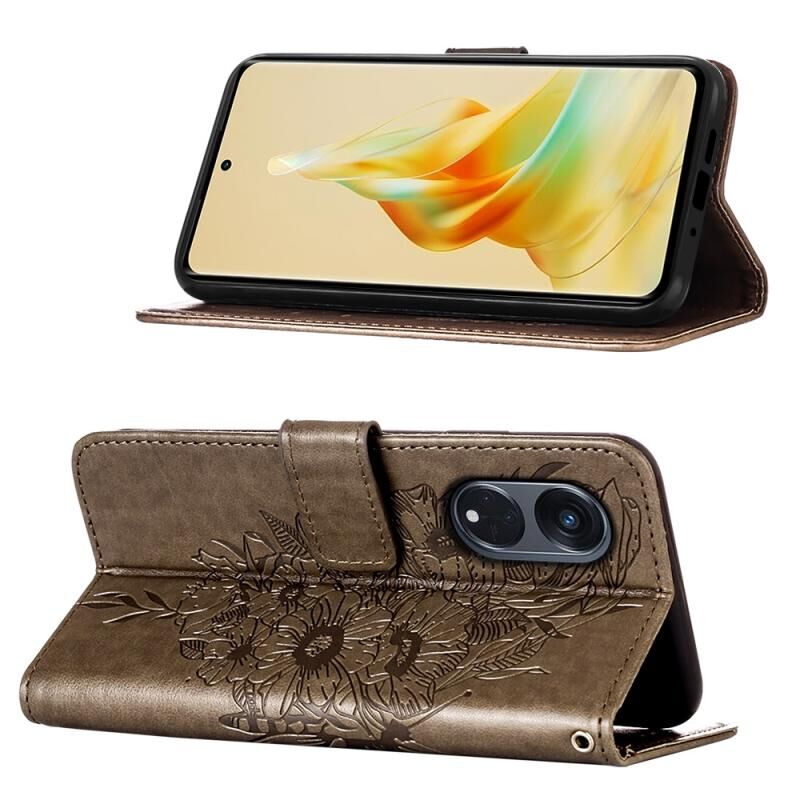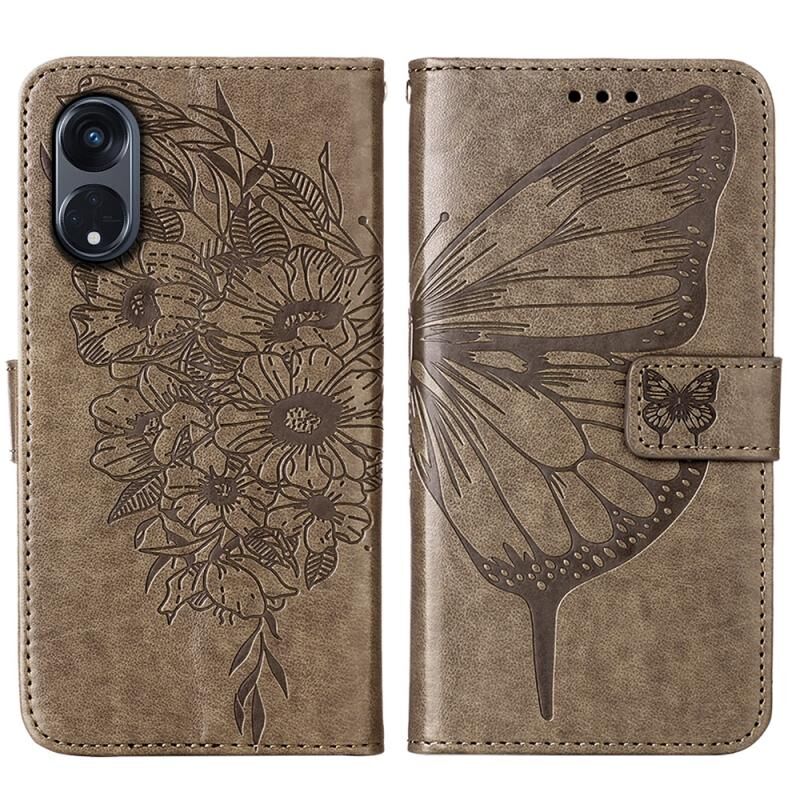 Θήκη τηλεφώνου από δέρμα με ανάγλυφο σχέδιο πεταλούδας για OPPO A1 Pro / Reno8 T 5G (Μαύρο)