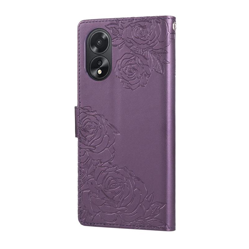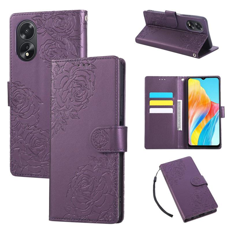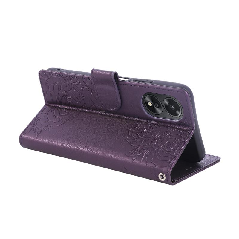 For OPPO A1 Pro Rose Flower Embossed 3-Card Slots Leather Phone Case(Deep Purple)