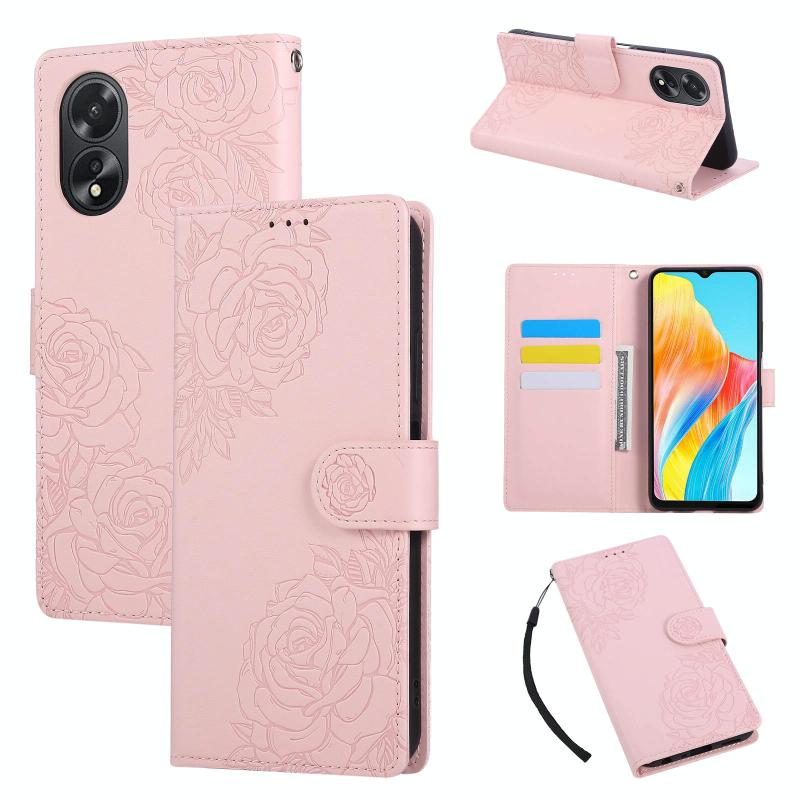 For OPPO A1 Pro Rose Flower Embossed 3-Card Slots Leather Phone Case(Pink)