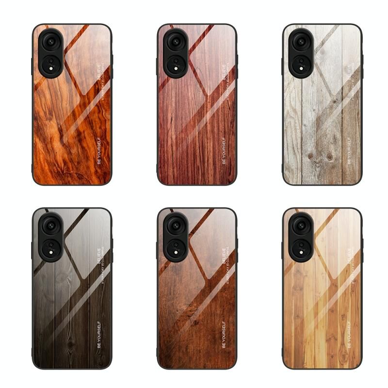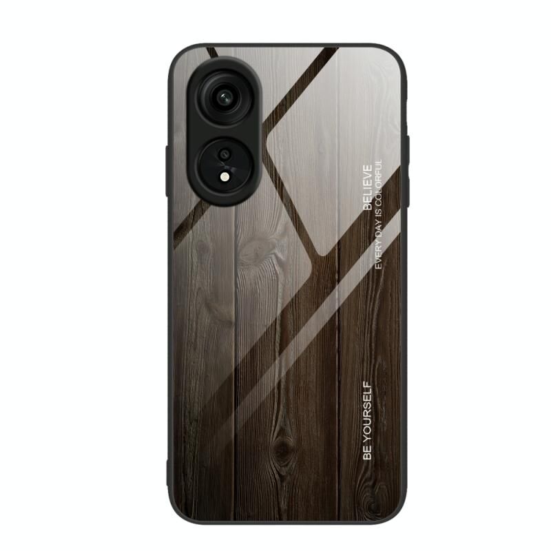 Για OPPO A1 Pro Wood Grain Glass TPU τηλέφωνο υπόθεση (Μαύρο)