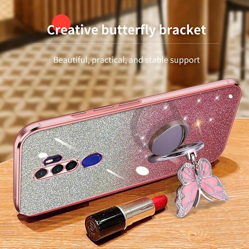 Για OPPO A11x / A9 2020 Επιμεταλλωμένο διαβάθμιση Glitter πεταλούδα κάτοχος TPU τηλέφωνο υπόθεση (Sierra Blue)