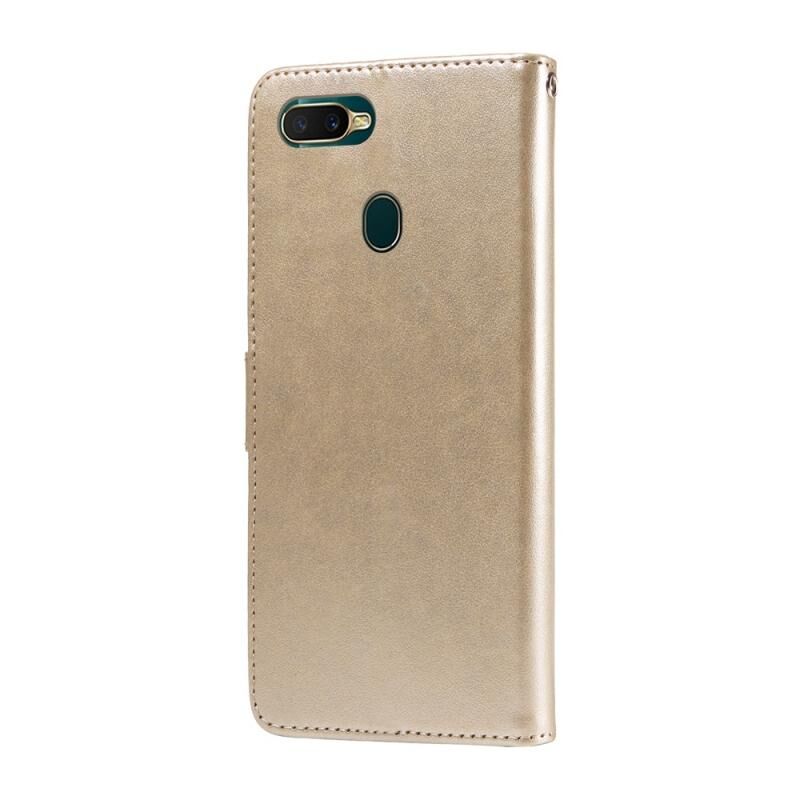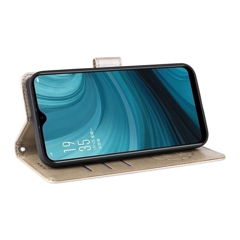 Θήκη τηλεφώνου από δέρμα με ανάγλυφα σχέδια πεταλούδας και λουλουδιών για OPPO A12 / A12s / A11k (Χρυσός)