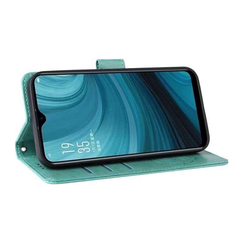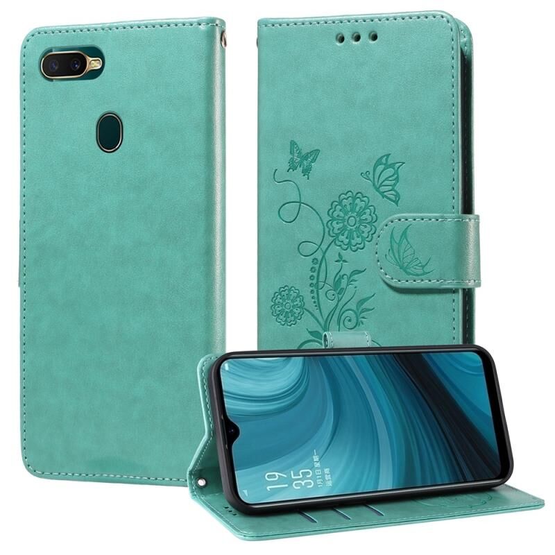 Θήκη τηλεφώνου από δέρμα με ανάγλυφα σχέδια πεταλούδας και λουλουδιών για OPPO A12 / A12s / A11k (πράσινο)