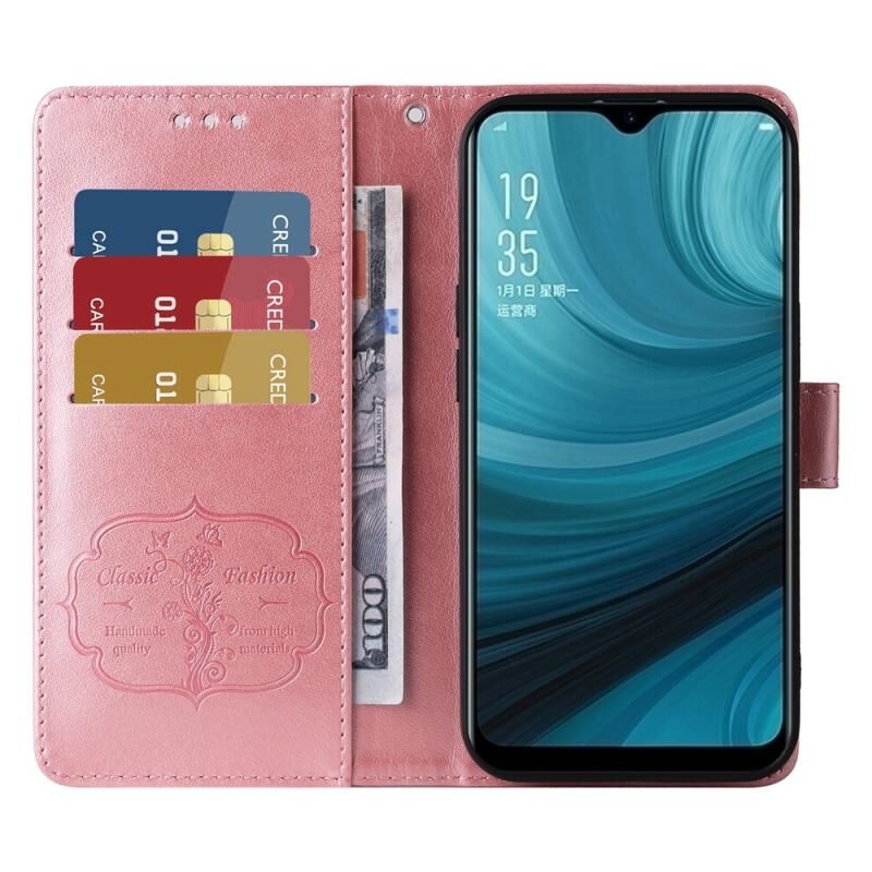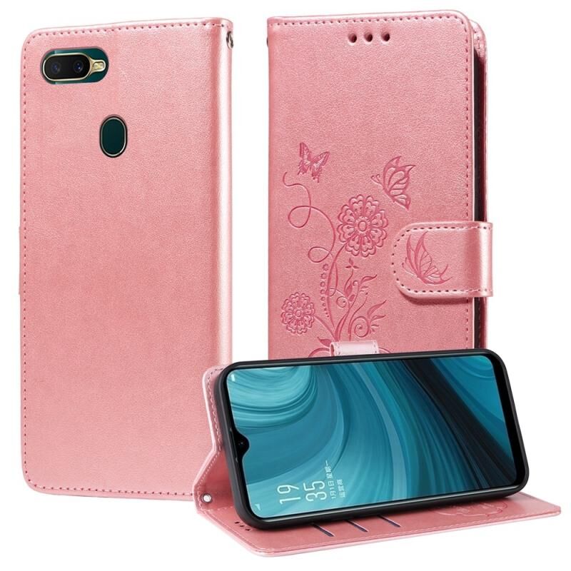 Θήκη τηλεφώνου από δέρμα με ανάγλυφα σχέδια πεταλούδας και λουλουδιών για OPPO A12 / A12s / A11k (Μωβ)
