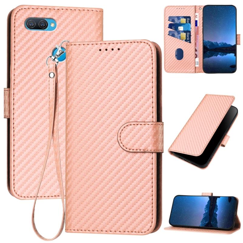 Θήκη τηλεφώνου από δέρμα με ανθρακονήματα και λουρί για OPPO A12 / A7 / A5s YX0070 (ρόζ)