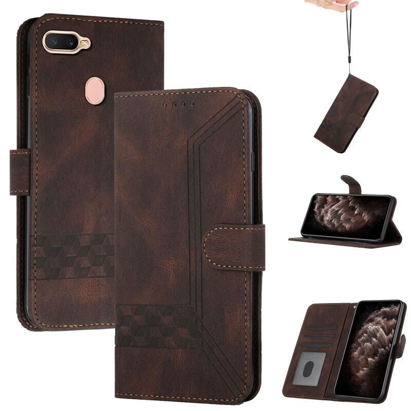 Θήκη τηλεφώνου από δέρμα με αίσθηση κυβικού δέρματος για OPPO A12 (Σκούρο Καφέ)
