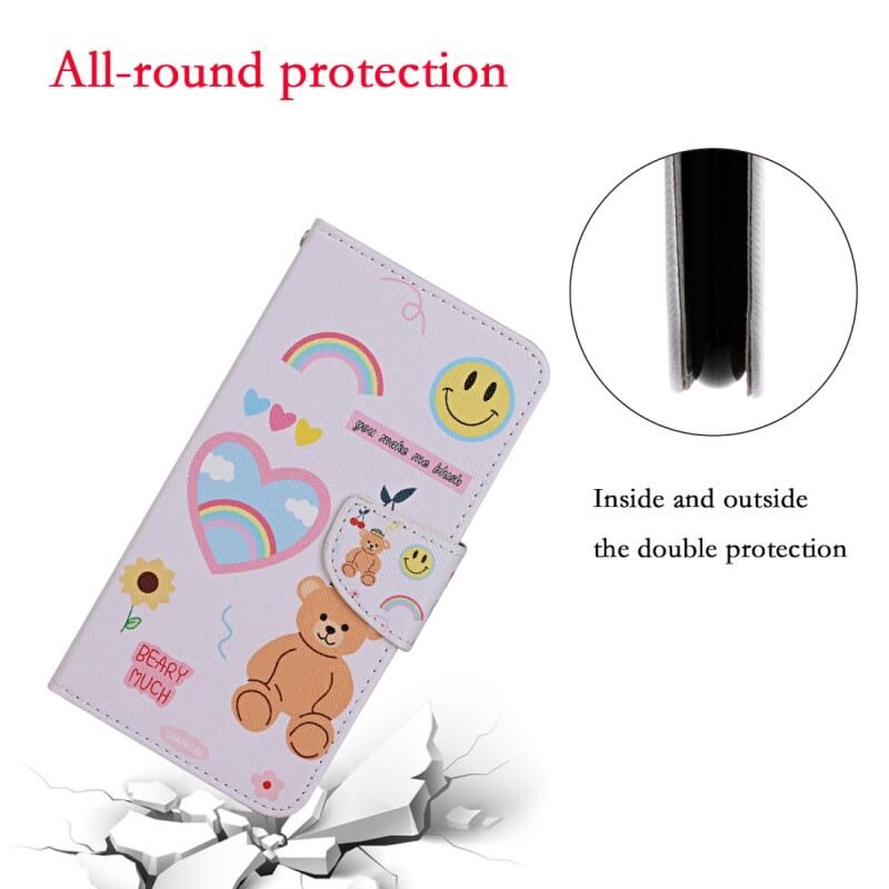 Θήκη δέρματος οριζόντιας αναδίπλωσης με σχέδιο πολύχρωμης ζωγραφικής για OPPO A12E με βάση & υποδοχές καρτών & πορτοφόλι (Κόκκινο)