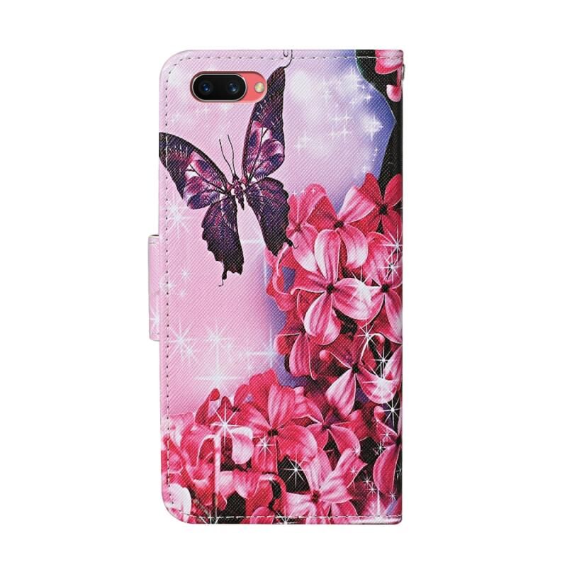 Θήκη δέρματος οριζόντιας αναδίπλωσης με σχέδιο πολύχρωμης ζωγραφικής για OPPO A12E με βάση & υποδοχές καρτών & πορτοφόλι (Πεταλούδα Μωβ)