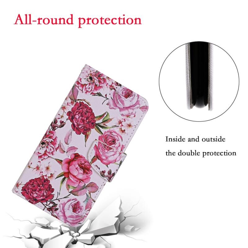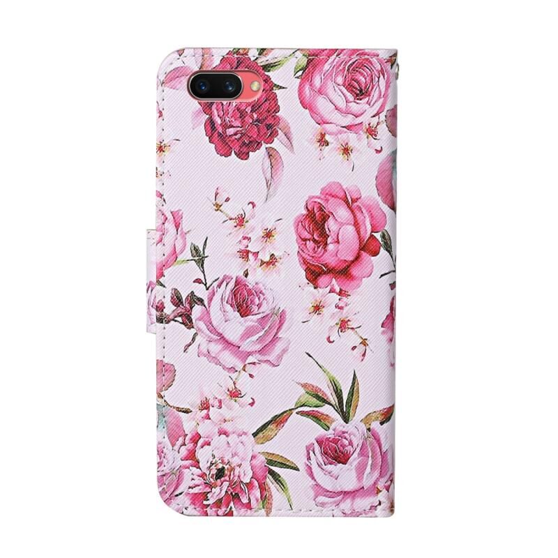 Θήκη δέρματος οριζόντιας αναδίπλωσης με σχέδιο πολύχρωμης ζωγραφικής για OPPO A12E με βάση & υποδοχές καρτών & πορτοφόλι (ρόδινο)