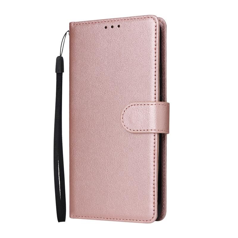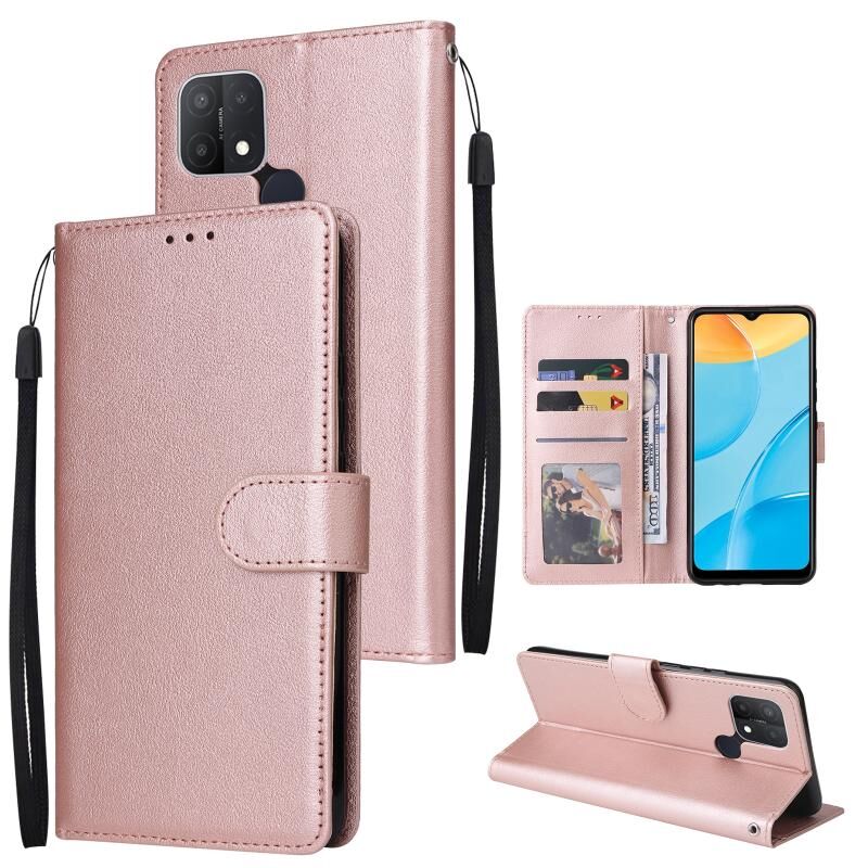 Για OPPO A15 / A15s / A35 Πολυλειτουργική οριζόντια Flip δερμάτινη θήκη με τρεις υποδοχές καρτών (ροζ χρυσό)