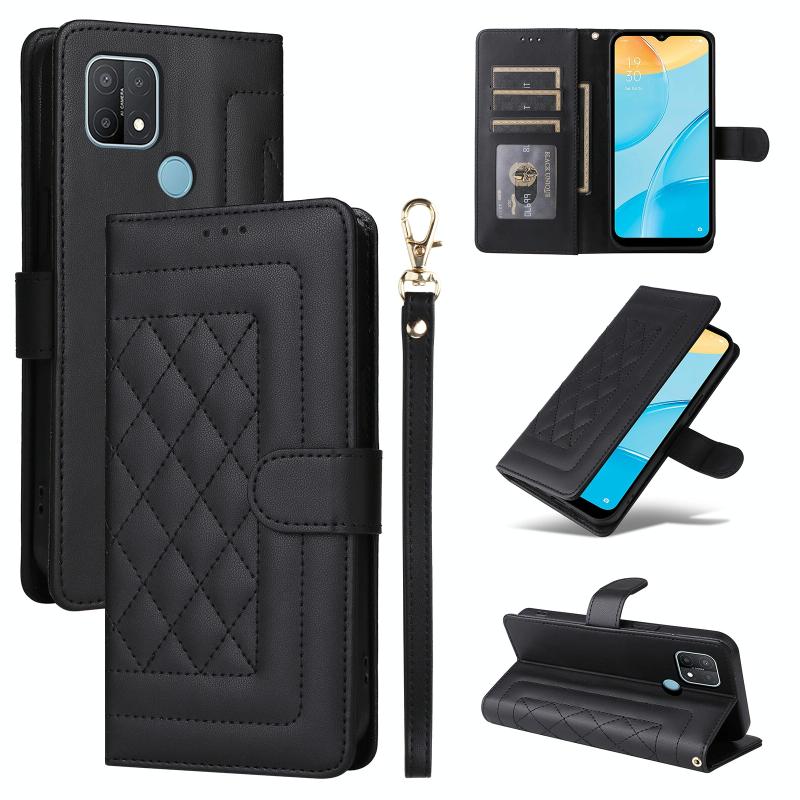 For OPPO A15 / A15s Diamond Lattice Leather Flip Phone Case(Black)