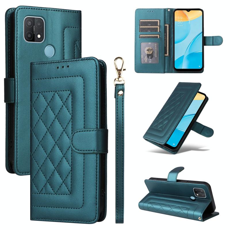 For OPPO A15 / A15s Diamond Lattice Leather Flip Phone Case(Green)