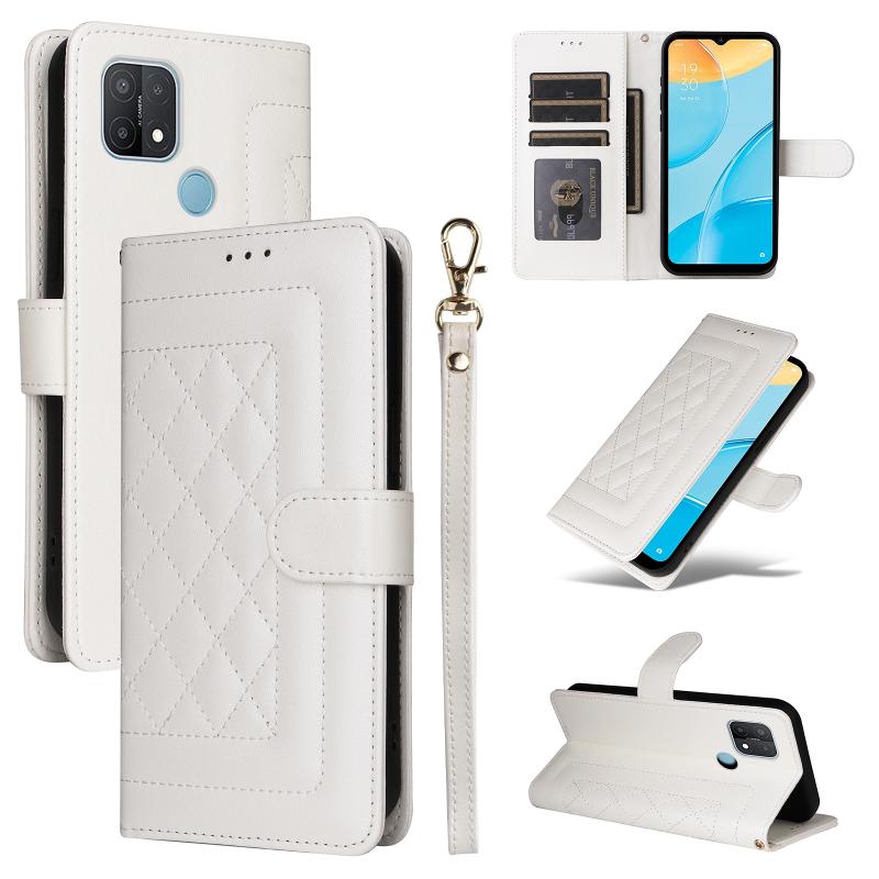 For OPPO A15 / A15s Diamond Lattice Leather Flip Phone Case(White)