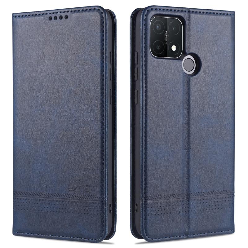 For OPPO A15 AZNS Magnetic Calf Texture Horizontal Flip Leather Case with Card Slots & Holder & Wallet(Dark Blue) (AZNS)