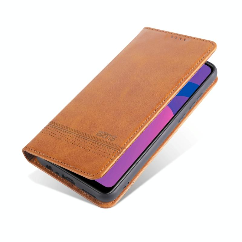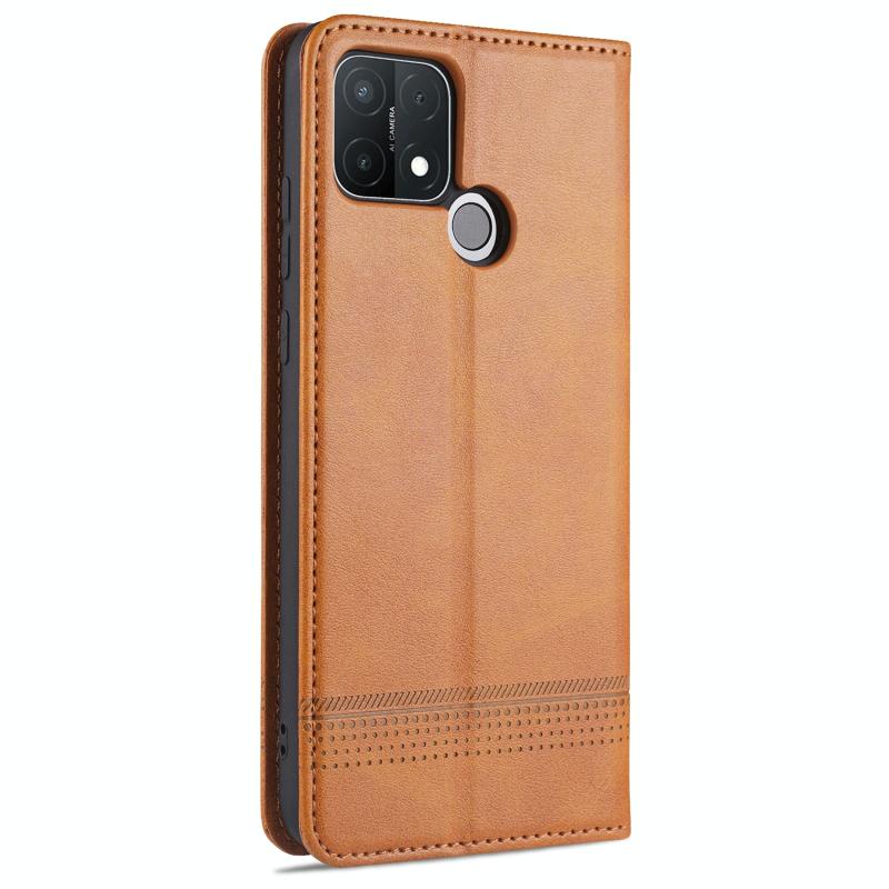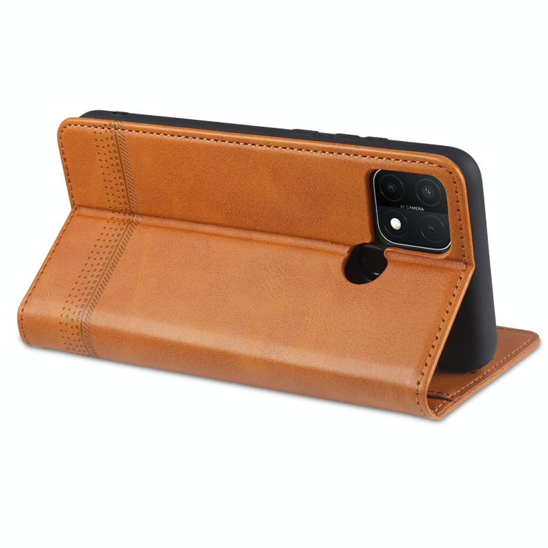For OPPO A15 AZNS Magnetic Calf Texture Horizontal Flip Leather Case with Card Slots & Holder & Wallet(Light Brown) (AZNS)