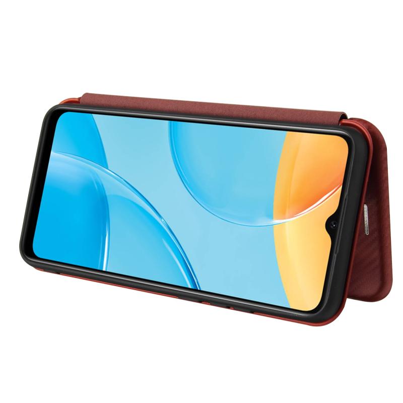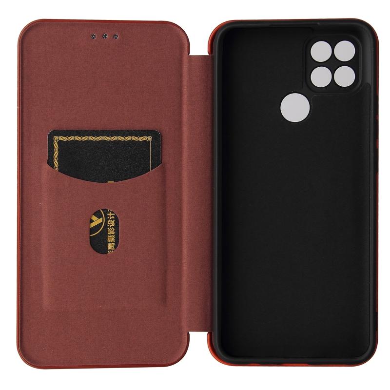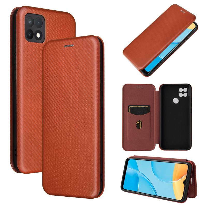 Θήκη για OPPO A15 με υφή ανθρακονήματος, οριζόντια, αναδιπλούμενη, από TPU + PC + Δερματίνη PU με θήκη για κάρτες (Μαύρο)