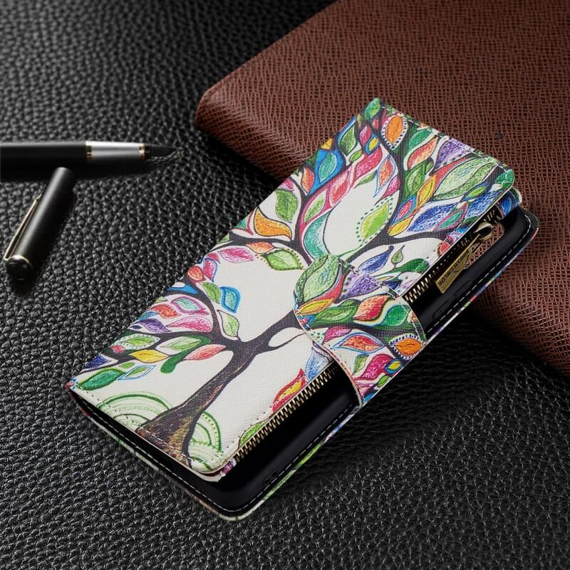 Θήκη δέρματος οριζόντιας αναδίπλωσης με φερμουάρ και σχέδιο ζωγραφικής για OPPO A15 (Μεγάλο Δέντρο) με βάση και θήκες για κάρτες & πορτοφόλι.