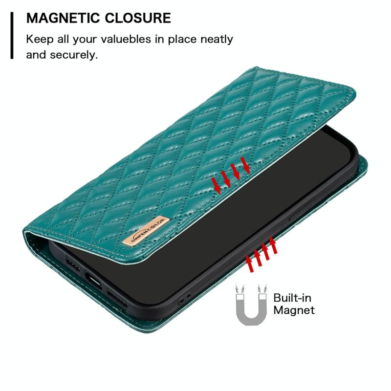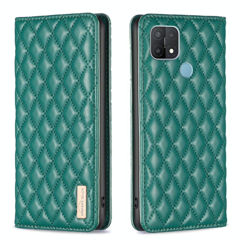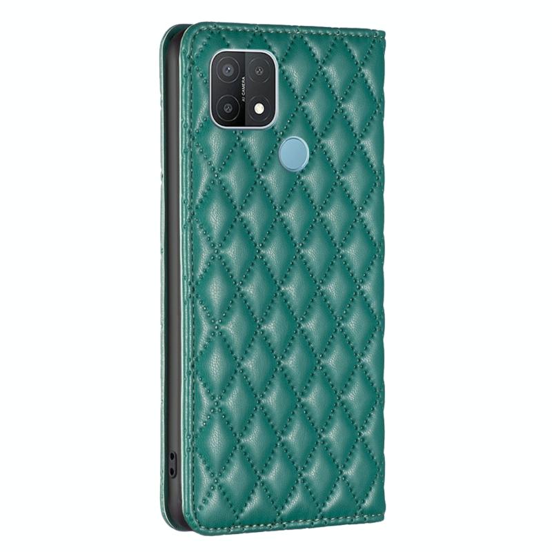Θήκη τηλεφώνου OPPO A15 Diamond Lattice Magnetic Leather Flip (πράσινο)