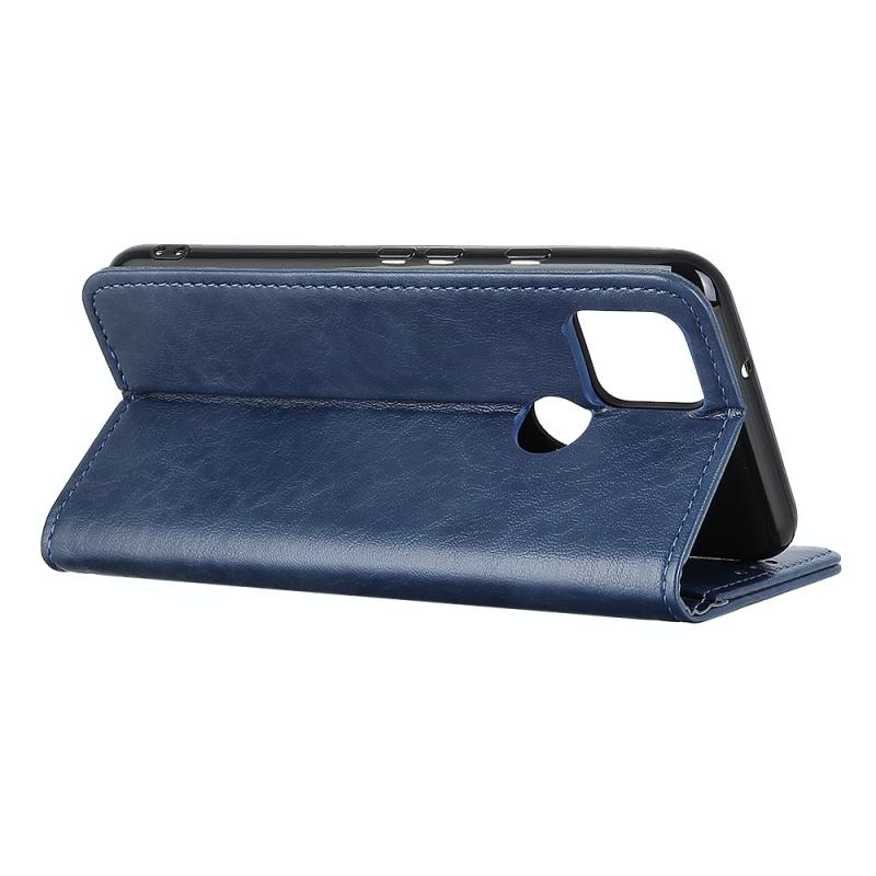 Θήκη δέρματος οριζόντιας αναδίπλωσης για OPPO A15 με μαγνητικό κλείσιμο και υφή Crazy Horse, με βάση στήριξης & θήκες καρτών & πορτοφόλι (Μπλε)