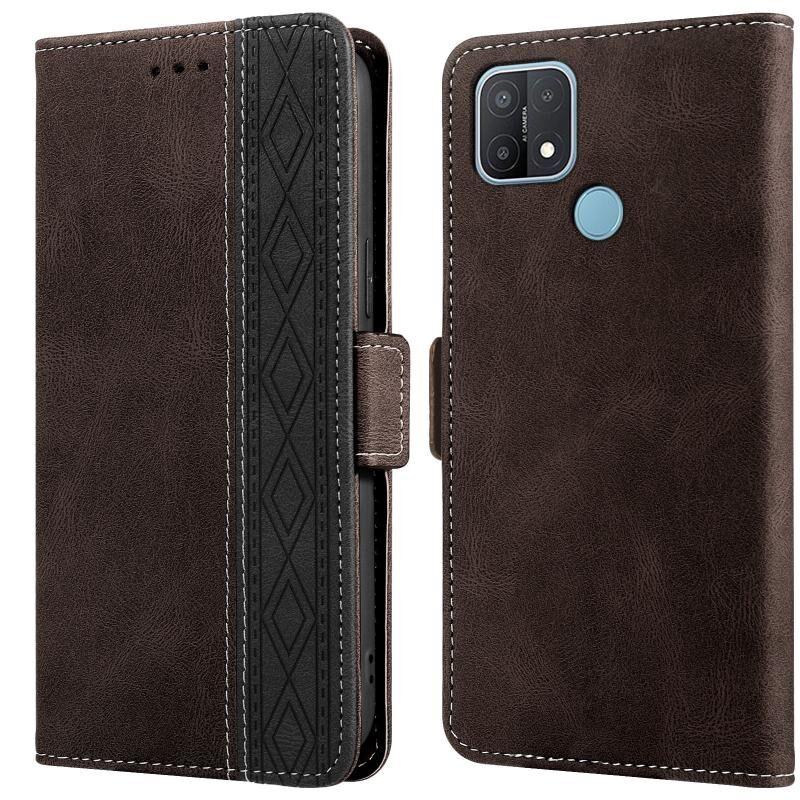 Για OPPO A15 ραφή Side-Magnetic RFID δερμάτινη θήκη τηλεφώνου (Καφέ)