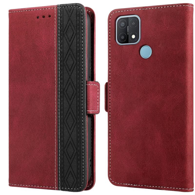 Για OPPO A15 ραφή Side-Magnetic RFID δερμάτινη θήκη τηλεφώνου (Κόκκινο)