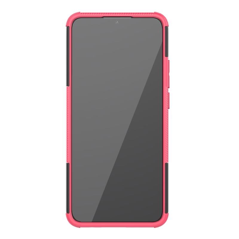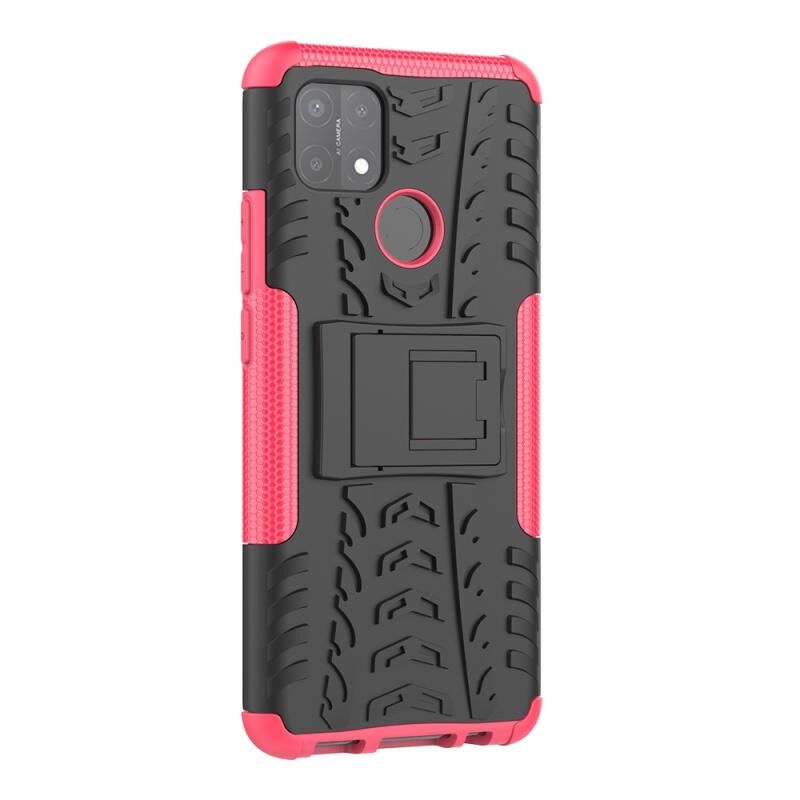 Θήκη προστασίας για OPPO A15 με υφή ελαστικού, αντικραδασμική από TPU+PC με βάση στήριξης (ρόζ)