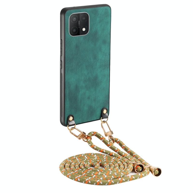 Θήκη κινητού τηλεφώνου OPPO A15 από δέρμα vintage και PC με λουρί χιαστί (πράσινο)