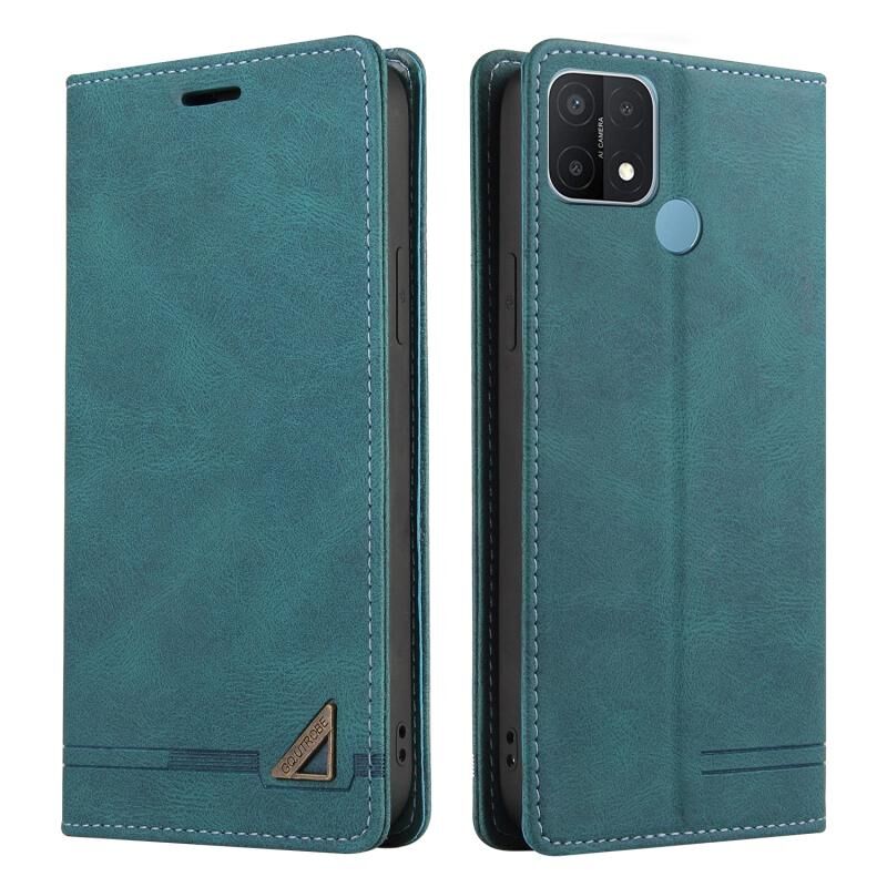 Για OPPO A15s / A15 Skin Feel Anti-theft Brush Οριζόντια Flip δερμάτινη θήκη με θήκη & υποδοχές καρτών & πορτοφόλι (Μπλε)