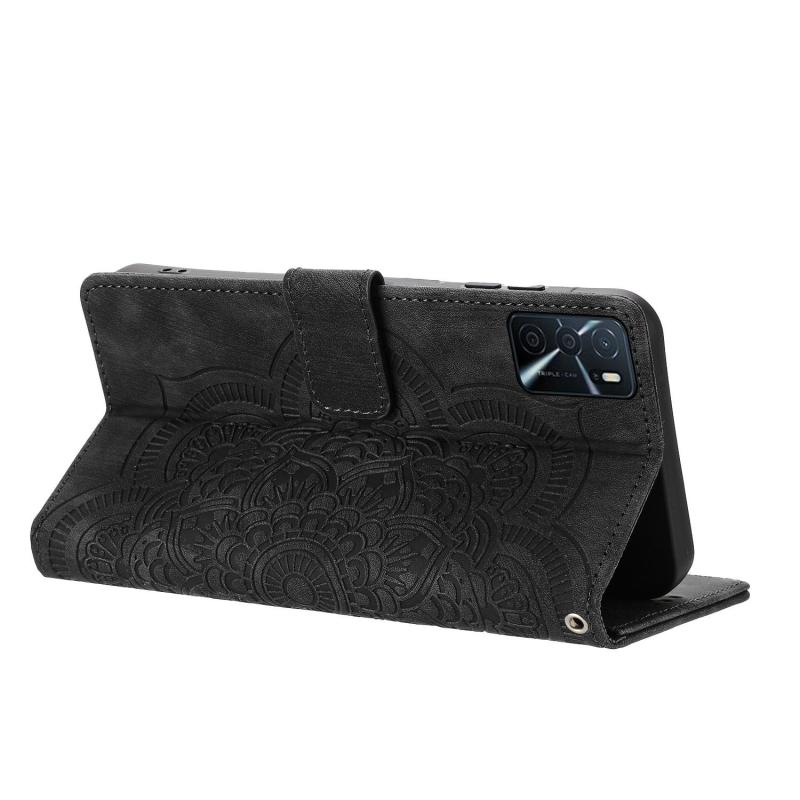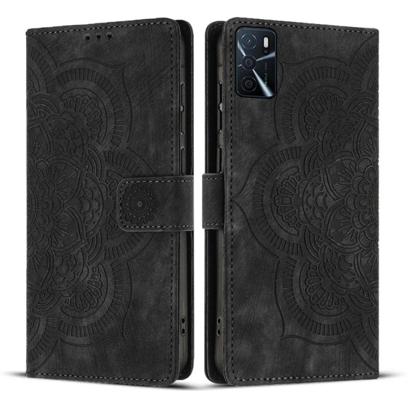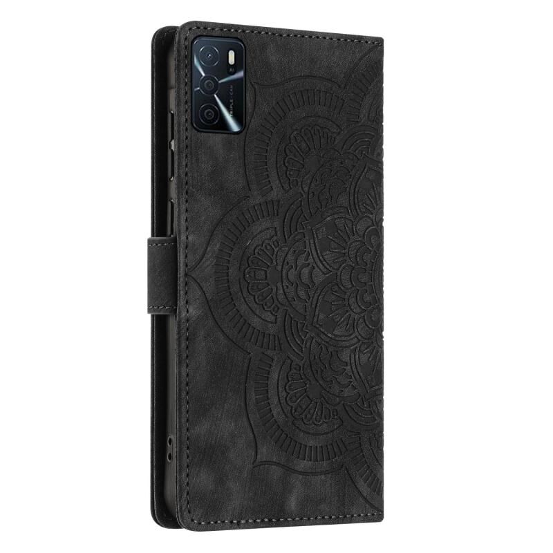 For OPPO A16 / A16S / A53 5G Mandala Embossed Retro Frosted Leather Phone Case(Black)