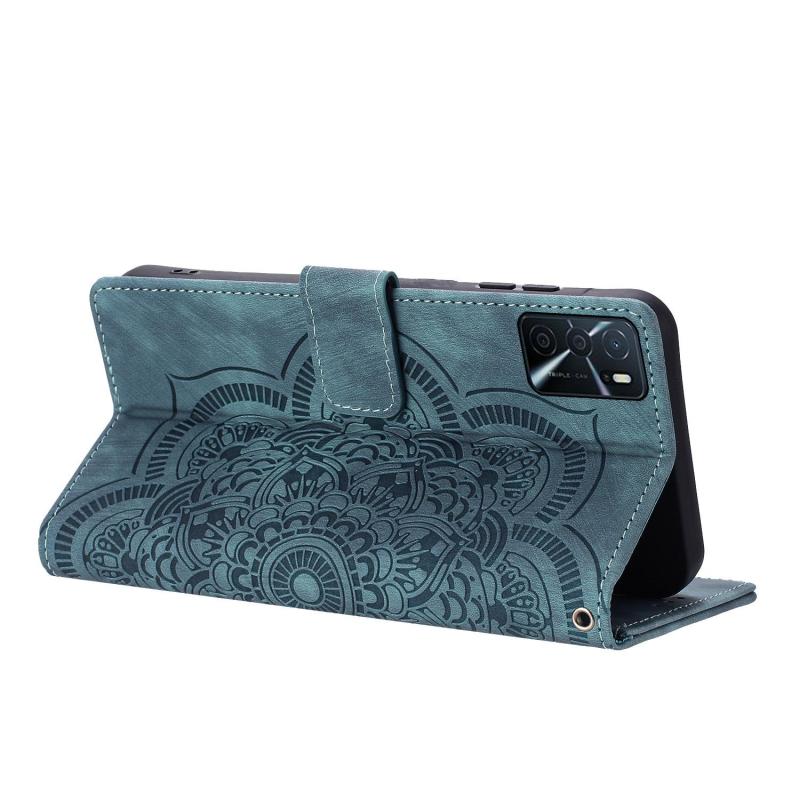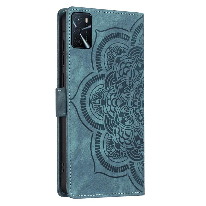 For OPPO A16 / A16S / A53 5G Mandala Embossed Retro Frosted Leather Phone Case(Blue)