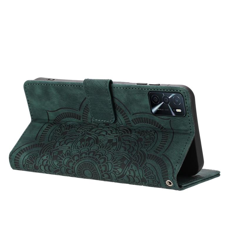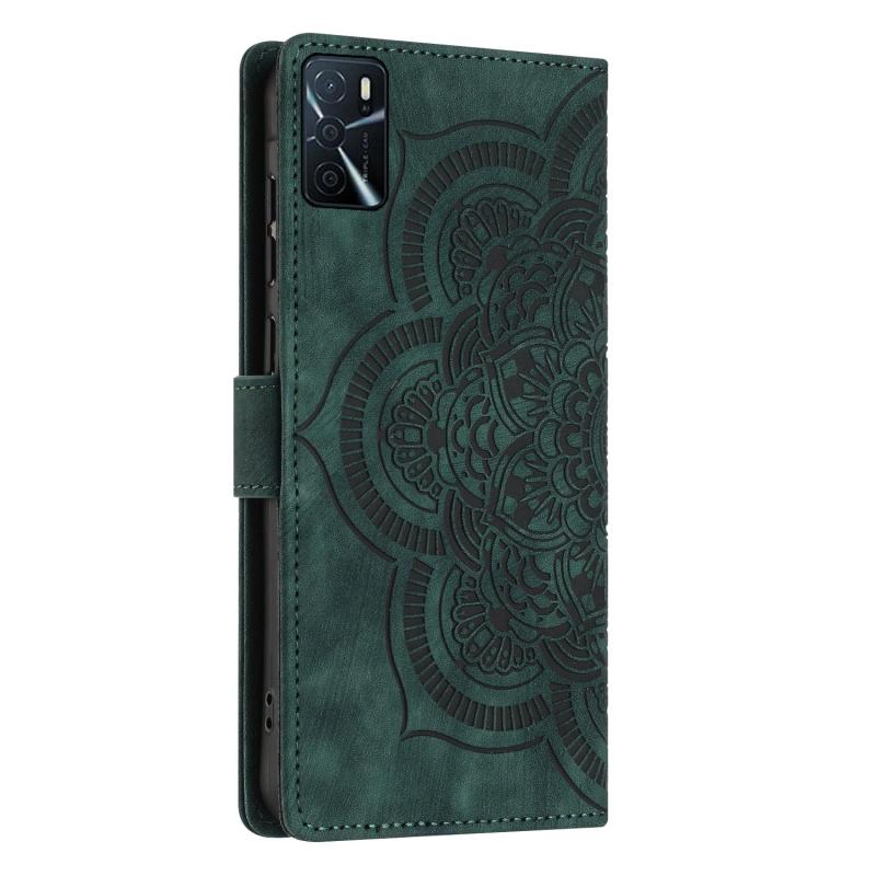 For OPPO A16 / A16S / A53 5G Mandala Embossed Retro Frosted Leather Phone Case(Green)